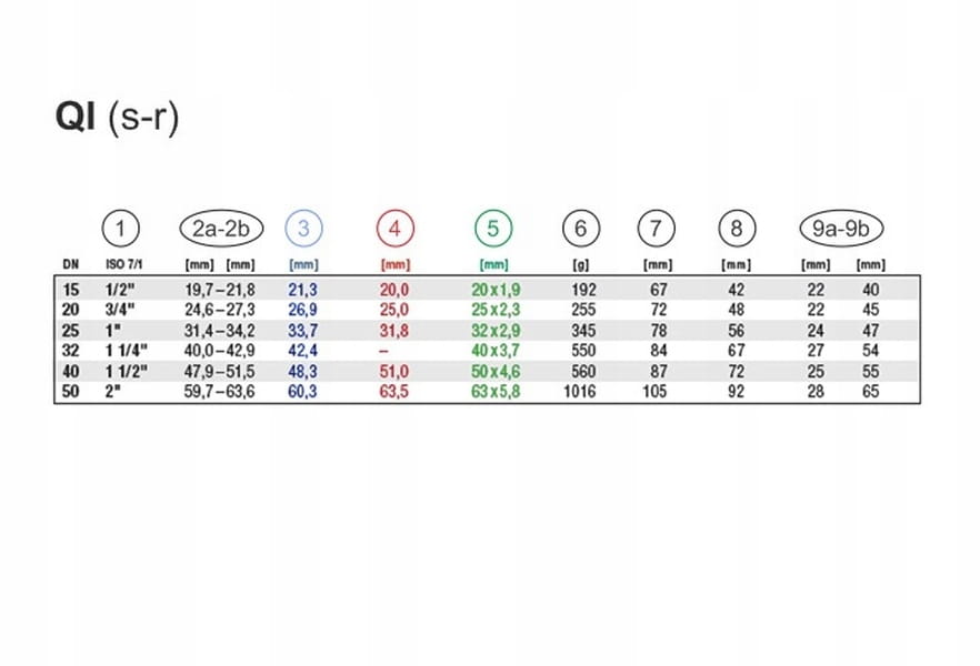 QI (s-r): dostępne rozmiary i wagi