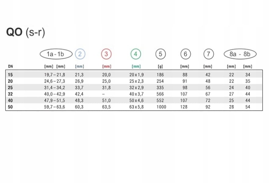 - zewnętrzna średnica rury [Ø]; 1a - od , 1b - do