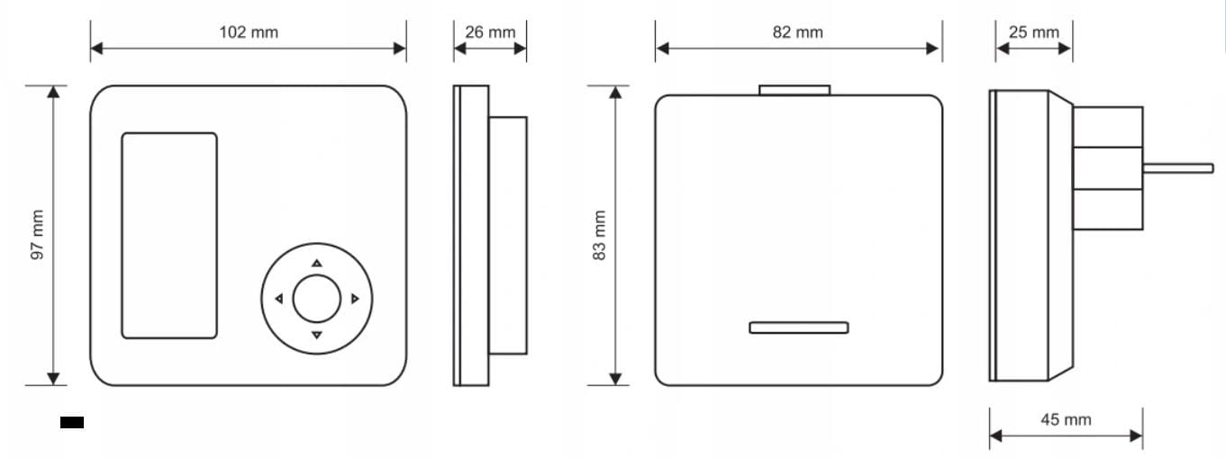 - Sposób montażu: regulator - podstawka / odbiornik -gniazdko 230 V 50 Hz