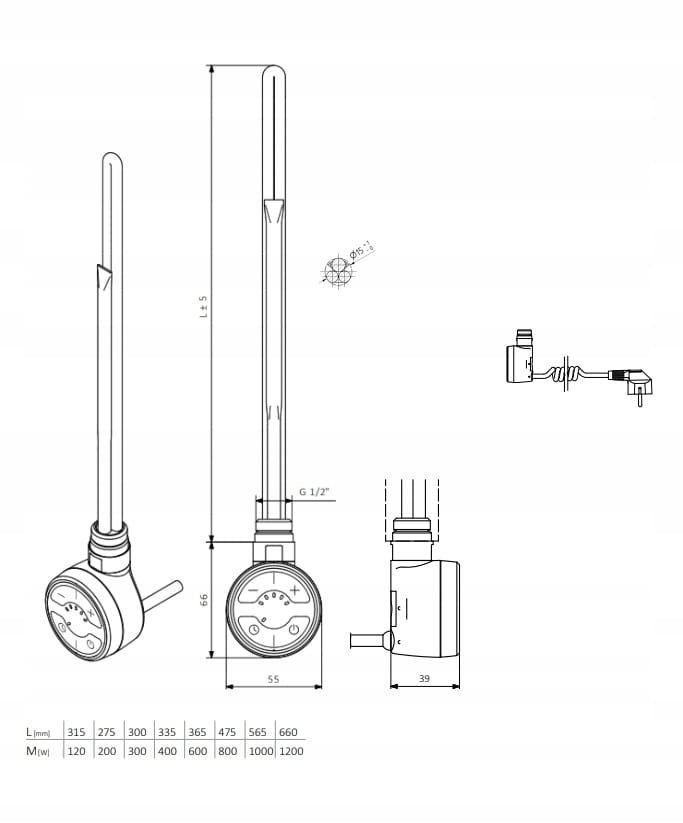 TERMA Grzałka elektryczna MOA 600W Metallic Black