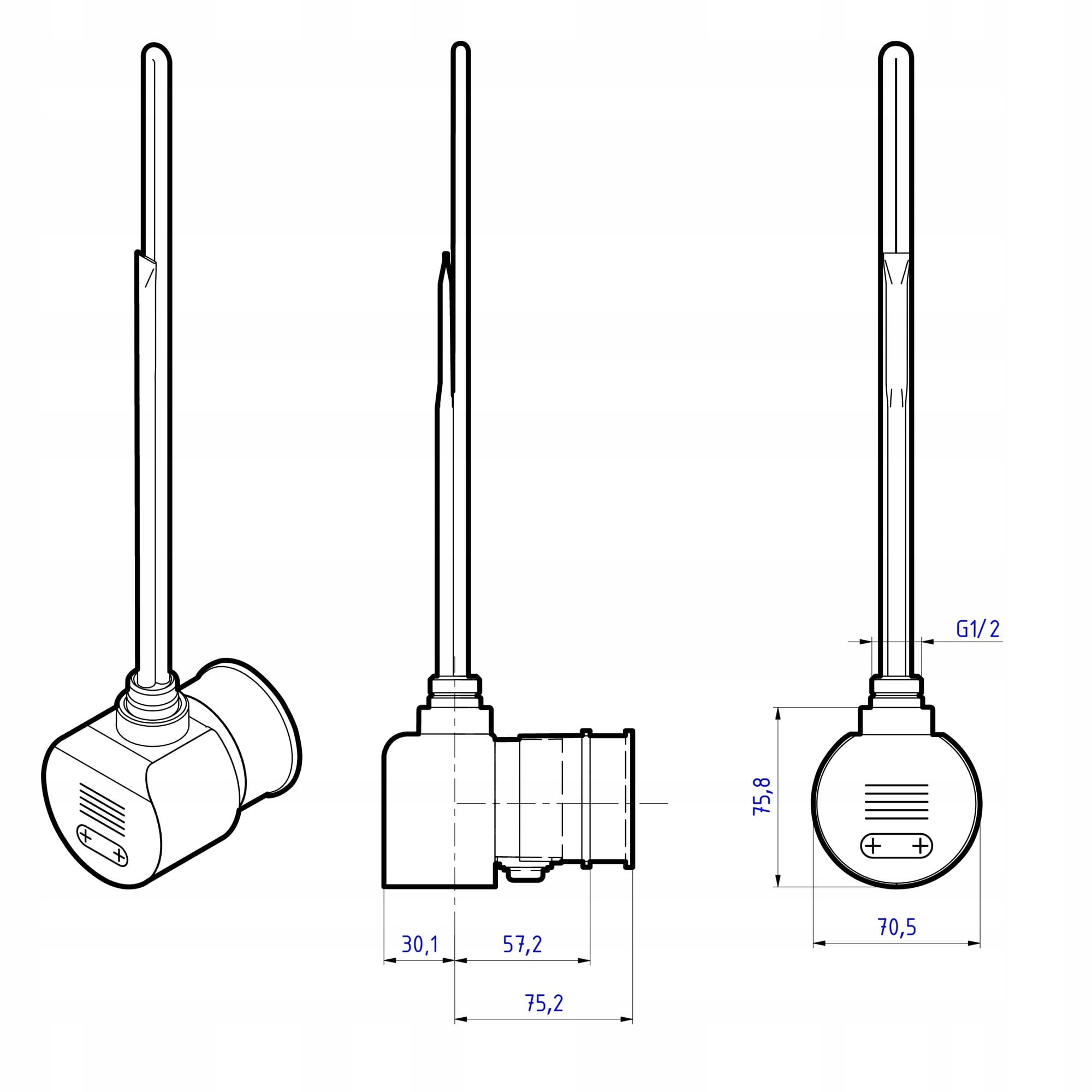 - Element grzewczy SMART można zamontować poziomo tak, żeby jego czujnik był najniżej (pręty grzewcze też poziomo, ale ponad nim). Czyli czujnik na dole grzejnika, dzięki czemu grzejnik będzie lepiej/efektywniej pracował. Sam sterownik będzie w prawdzie obrócony o 90° w stosunku do standardowego pionowego montażu, ale można przeprogramować go tak, aby klawisz + był zawsze wyżej niż -, niezależnie od tego czy grzałka montowana jest z prawej czy lewej strony grzejnika.