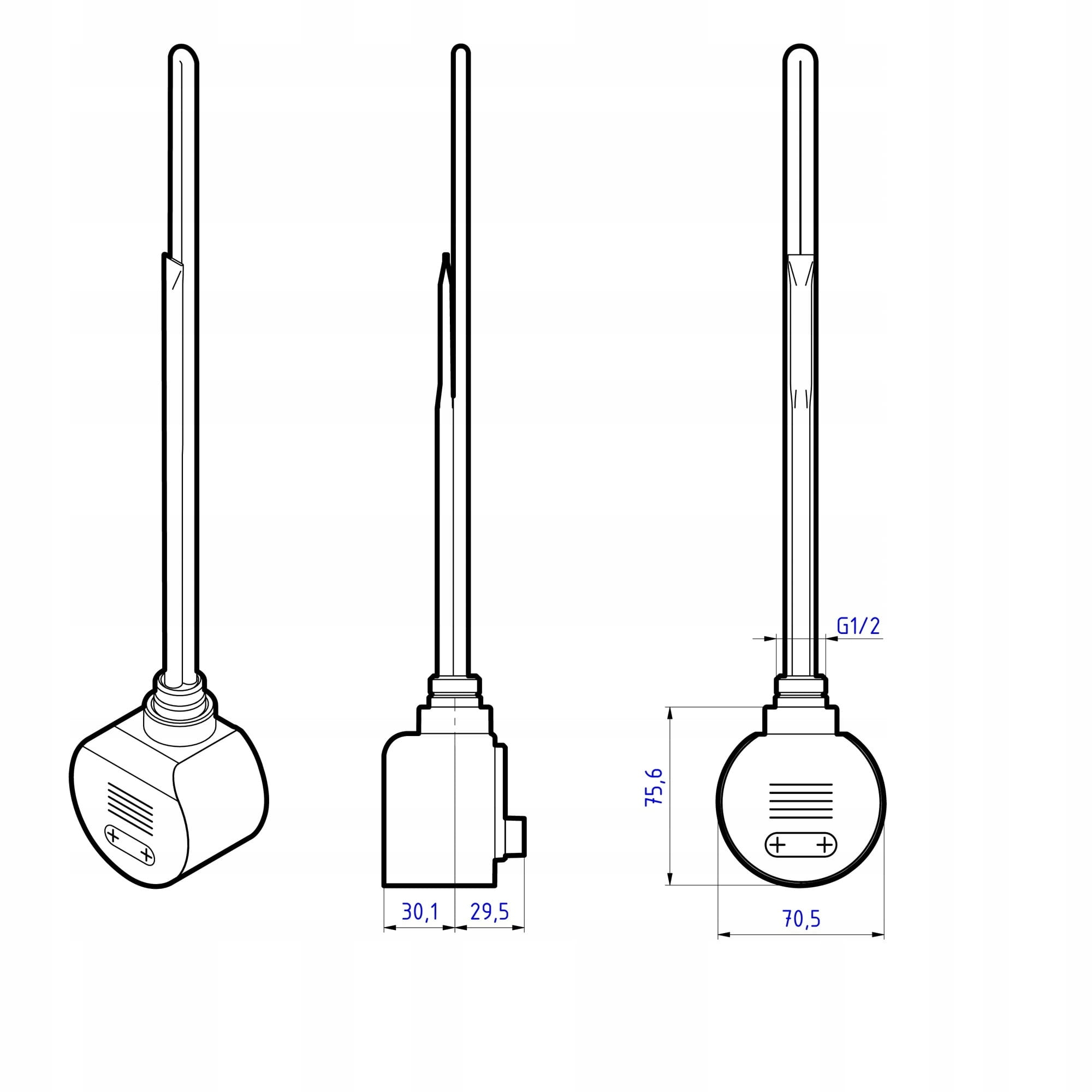 - Element grzewczy SMART można zamontować poziomo tak, żeby jego czujnik był najniżej (pręty grzewcze też poziomo, ale ponad nim). Czyli czujnik na dole grzejnika, dzięki czemu grzejnik będzie lepiej/efektywniej pracował. Sam sterownik będzie w prawdzie obrócony o 90° w stosunku do standardowego pionowego montażu, ale można przeprogramować go tak, aby klawisz + był zawsze wyżej niż -, niezależnie od tego czy grzałka montowana jest z prawej czy lewej strony grzejnika.