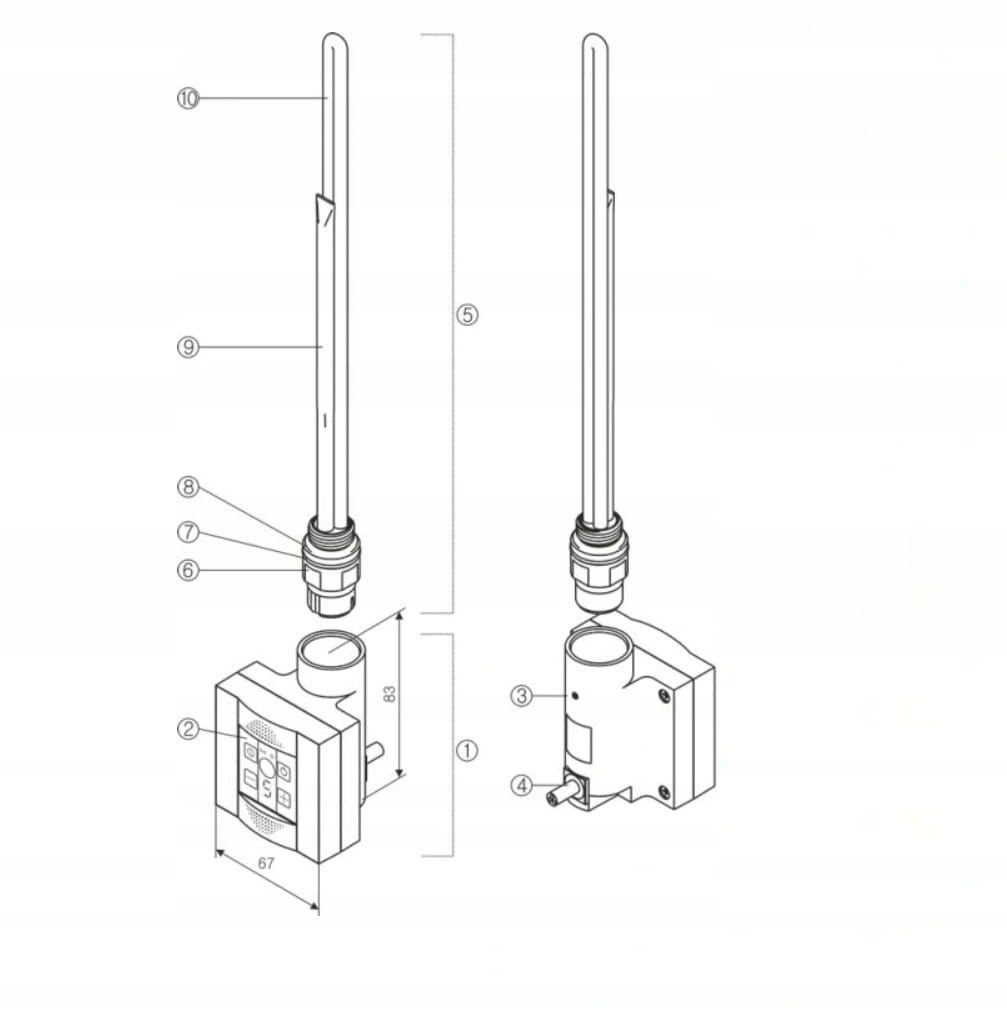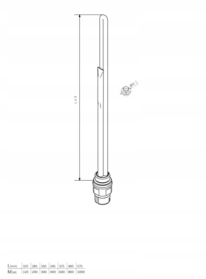 - ELEMENT GRZEWCZY (SPLIT z gwintem 1/2" GZ) o mocy do wyboru: 200W, 300W, 400W, 600W, 800W i 1000W (po zakupie należy wskazać wybraną moc)