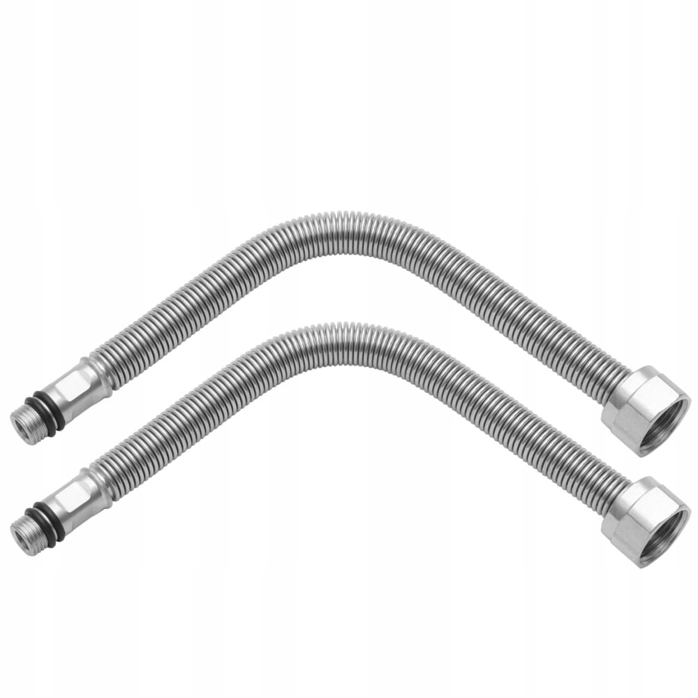 Na aukcji wystawiamy komplet 2 szt. o takiej samej długości. Flexo-ExTap to elastyczne i rozciągliwe przewody karbowane, wykonane ze stali nierdzewnej, przeznaczone do podłączania wody użytkowej do baterii stojących. Przewód: Stal austenityczna AISI316L, końcówka do baterii – stal nierdzewna AISI304; nakrętka: mosiądz niklowany; uszczelka: NBR. GW z nakrętką obrotową pod uszczelkę płaską, GZ z 2 o-ringami do baterii.