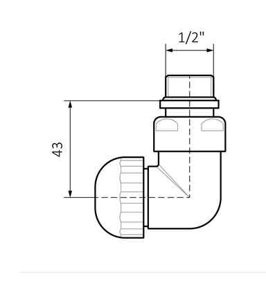 Od strony przyłączenia do grzejnika zawór ma gwint zewnętrzny 1/2". W celu podłączenia do instalacji potrzebne są złączki serii TGAST - ADAPTER 24x19 X 15 na miedź SATYNA lub ADAPTER 24x19 X 16 PEX SATYNA.