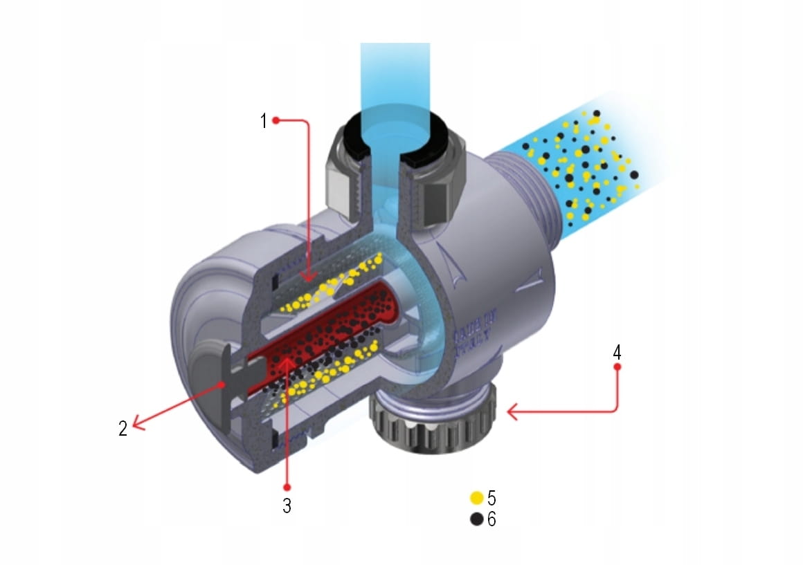 - mechanicznej filtracji dzięki zastosowaniu specjalnego wkładu filtracyjnego